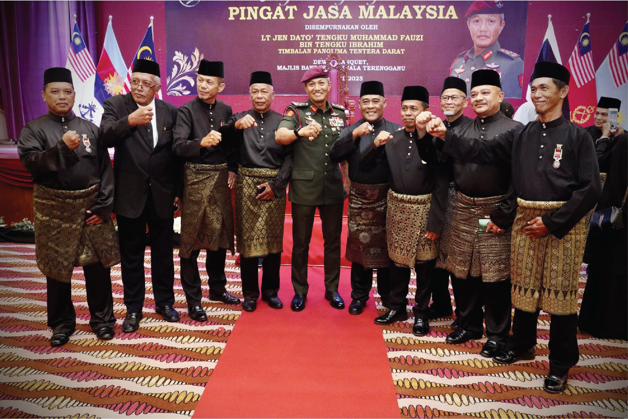 KUALA TERENGGANU, 29 APRIL 2025 - Timbalan Panglima Tentera Darat, Yang Berbahagia Leftenan Jeneral Dato’ Tengku Muhammad Fauzi bin Tengku Ibrahim, telah menyempurnakan Majlis Penganugerahan Pingat Jasa Malaysia (PJM) kepada 491 orang Veteran ATM, balu serta wakil waris di Kuala Terengganu, Terengganu Darul Iman dekat sini hari ini.