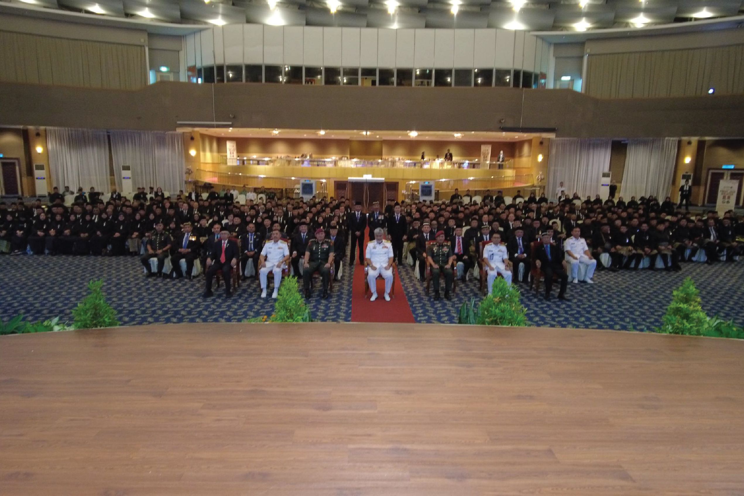 KUALA LUMPUR, 4 JUN 2025 - Panglima Tentera Laut, Yang Berbahagia Laksamana Tan Sri (Dr.) Zulhelmy bin Ithnain dan Ketua Staf Markas Angkatan Tentera, Yang Berbahagia Leftenan Jeneral Dato' Azhan bin Hj. Md. Othman telah menyempurnakan Majlis Penganugerahan Pingat Jasa Malaysia (PJM) kepada 817 orang Veteran ATM, balu serta wakil waris di Dewan Perdana Felda, Kuala Lumpur dekat sini hari ini.
