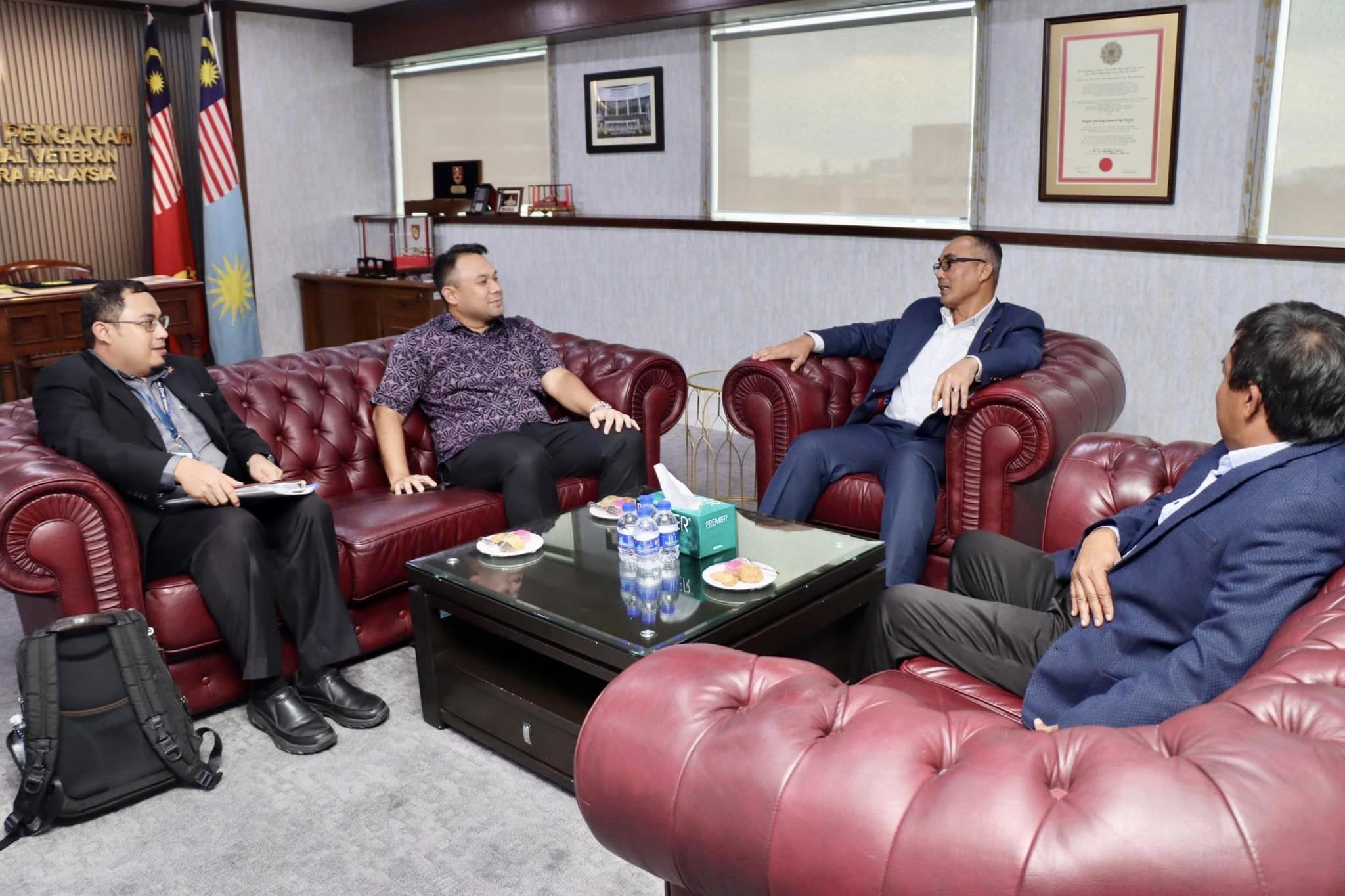 𝗞𝗨𝗔𝗟𝗔 𝗟𝗨𝗠𝗣𝗨𝗥, 𝟱 𝗡𝗢𝗩𝗘𝗠𝗕𝗘𝗥 𝟮𝟬𝟮𝟰 - Mej Jen Datuk Hamdan bin Haji Ismail (B), Pengerusi Eksekutif Muhafiz Technology Sdn. Bhd., sebuah syarikat bumiputera milik veteran Angkatan Tentera Malaysia (ATM), telah mengadakan kunjungan hormat ke atas Ketua Pengarah Jabatan Hal Ehwal Veteran (JHEV) ATM, Mej Jen Dato' Haji Semaon bin Haji Marjuki bagi membincangkan peluang kerjasama dan pembangunan keusahawanan veteran ATM.