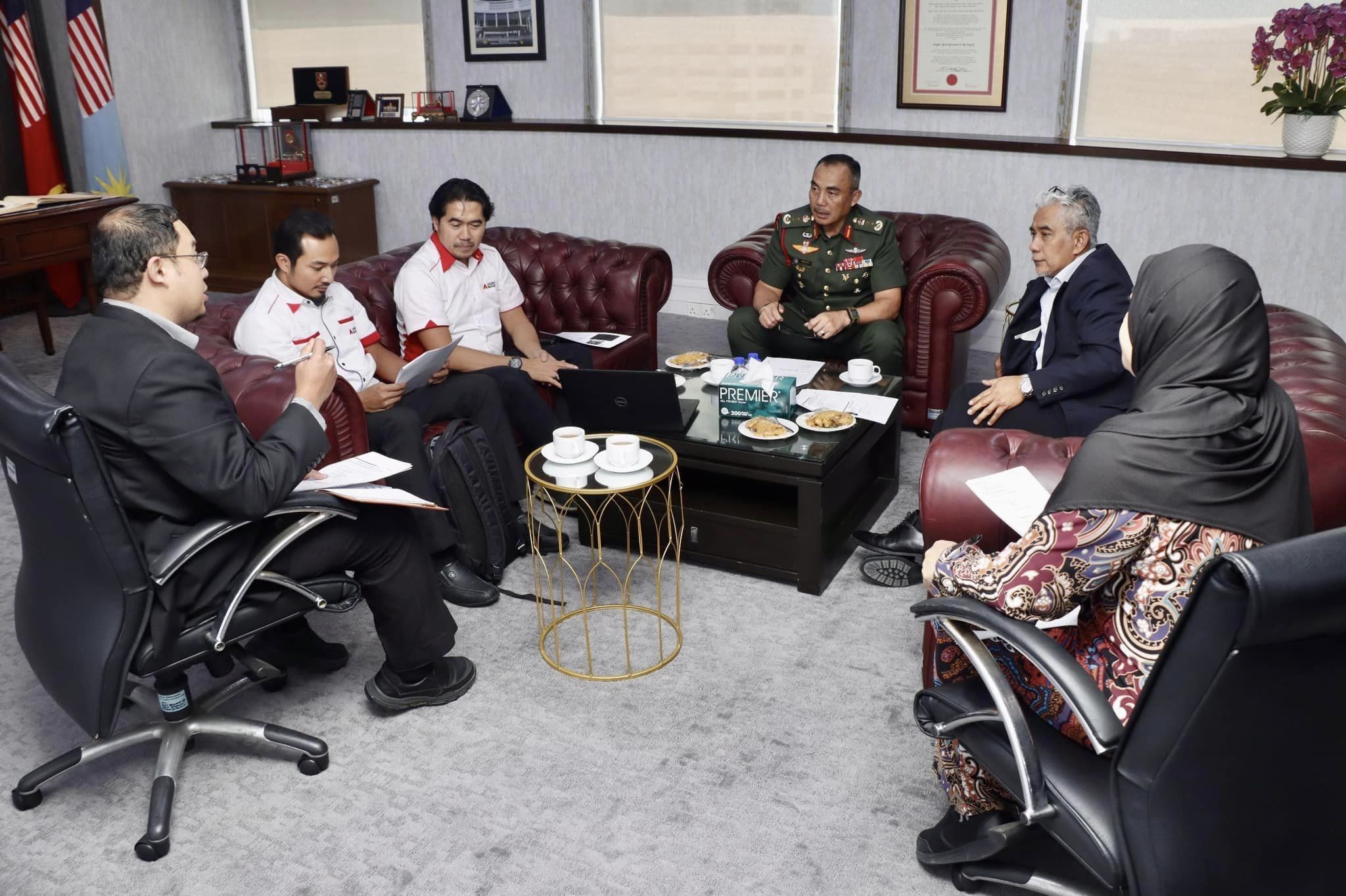 Ketibaan Delegasi Agrobank yang diketuai oleh Pengarah Urusan merangkap Ketua Pegawai Eksekutif, YM Dato' Tengku Ahmad Badli Shah Raja Hussin, disambut oleh Ketua Pengarah JHEV ATM, Mej Jen Dato' Haji Semaon bin Haji Marjuki, di Ibu Pejabat Jabatan Hal Ehwal Veteran (JHEV) ATM, Menara TH Perdana, Kuala Lumpur.