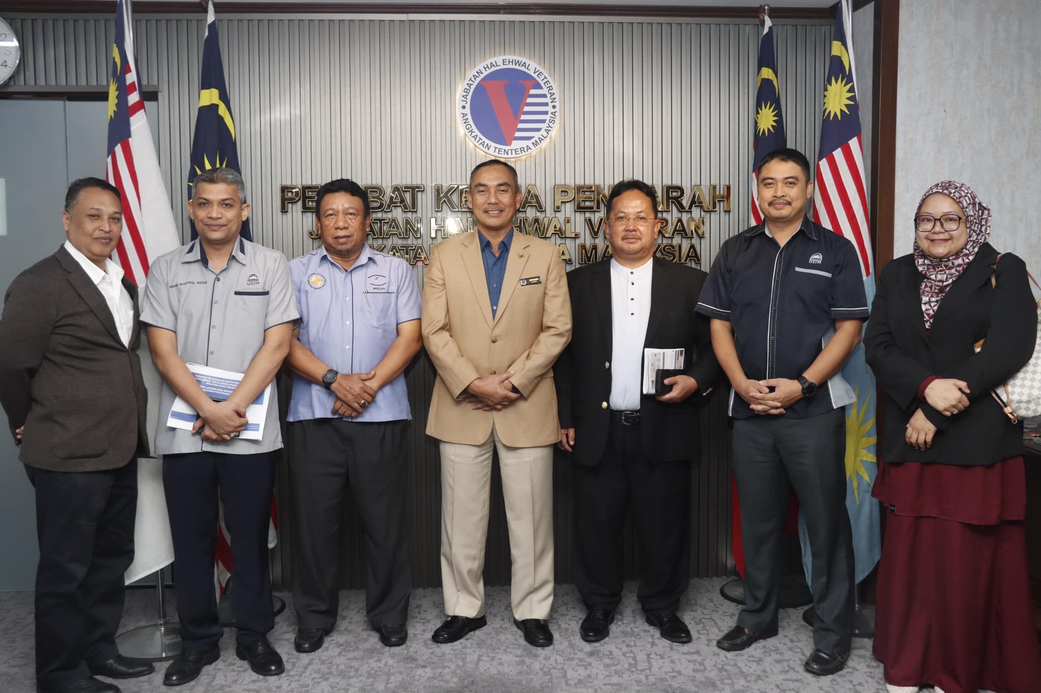𝗞𝗨𝗔𝗟𝗔 𝗟𝗨𝗠𝗣𝗨𝗥, 𝟭𝟱 𝗡𝗢𝗩𝗘𝗠𝗕𝗘𝗥 𝟮𝟬𝟮𝟰 - Ketua Pengarah Jabatan Hal Ehwal Veteran (JHEV ATM) hari ini menerima kunjungan hormat daripada delegasi Universiti Sains Islam Malaysia (USIM). Kunjungan tersebut bertujuan membincangkan peluang kerjasama strategik dalam bidang pendidikan dan kemahiran untuk anggota serta veteran Angkatan Tentera Malaysia (ATM).