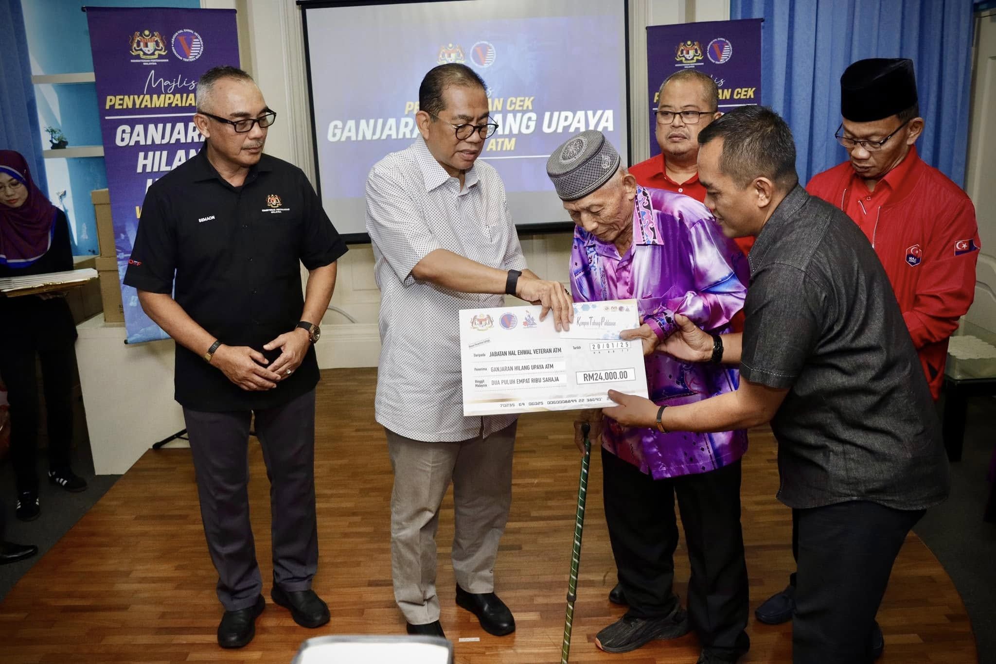 MUAR, 8 FEBRUARI 2025 – Menteri Pertahanan, YB Dato' Seri Mohamed Khaled bin Nordin telah hadir menyempurnakan Majlis Penyerahan Faedah Ganjaran Hilang Upaya veteran ATM di Muar, Johor dekat sini hari ini. Penambahbaikan Faedah Ganjaran Hilang Upaya (GHU) telah disemak secara sepenuhnya dengan memberi kenaikan yang signifikan dan berkuatkuasa bermula Januari 2025 seiring dengan pelarasan Sistem Saraan Perkhidmatan Awam (SSPA). Faedah GHU ini adalah satu bentuk manfaat kepada semua anggota ATM yang mengalami kecederaan semasa tugas aktif (Wounded in Action) yang diberi secara sekali gus (one off). YB Menteri Pertahanan telah menyampaikan faedah Ganjaran Hilang Upaya (GHU) kepada seramai tujuh (7) veteran ATM daerah Muar, Johor. Dalam majlis yang sama, YB Menteri Pertahanan turut menyampaikan bungkusan Kotak Cakna kepada seramai sembilan (9) veteran ATM yang diantaranya mengalami masalah pendengaran, masalah pertuturan, kemalangan dalam perkhidmatan, menjaga anak Orang Kurang Upaya (OKU), uzur, mengalami sakit jantung dan Veteran Kurang Upaya (VKU). Seramai 1,825 veteran ATM hilang upaya seluruh Malaysia termasuk yang cedera semasa melaksanakan tugas aktif dan 292 orang daripada jumlah tersebut mengalami kecederaan semasa operasi dan latihan berisiko tinggi. Penyerahan faedah GHU selepas penambahbaikan telah mula dilaksanakan sejak awal Januari 2025 dan seramai 50 orang yang telah pun menerima GHU. Untuk rekod, veteran di Daerah Muar, Johor mempunyai seramai 2,020 veteran ATM di mana 916 adalah veteran ATM berpencen, 733 adalah veteran ATM yang tidak berpencen dan 371 penerima pencen terbitan. Pengukuhan dan pemerkasaan aspek kesejahteraan veteren sentiasa diperluas dan diperkemas agar kebajikan veteran ATM sentiasa terpelihara sebagaimana yang telah digariskan di dalam Perutusan Tahun Baharu 2025 Menteri Pertahanan dalam Fokus Keempat: Memperkukuh Ekosistem Kesejahteraan. Turut hadir dalam majlis tersebut ialah Ketua Pengarah JHEV ATM Mejar Jeneral Dato’ Haji Semaon bin Haji Marjuki dan Lt Kol Azwadi bin Jamian, Ketua Pegawai Eksekutif Yayasan Veteran ATM.