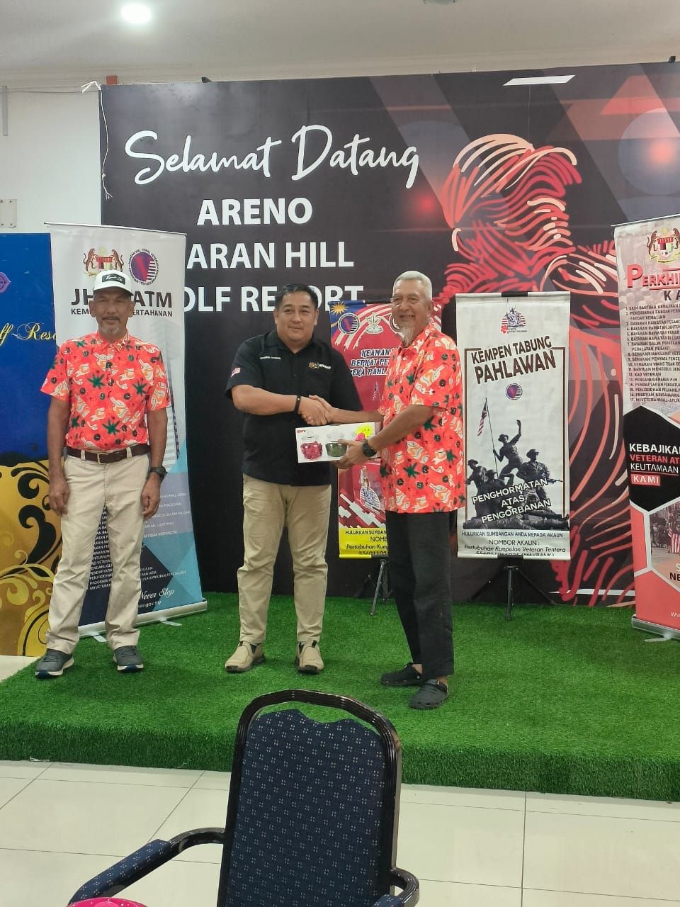 Kuantan, 3 Mac 2024 - Pengarah JHEV ATM Cawangan Negeri Pahang, Mej Khairul Ashinar bin Azid @ Aziz TUDM telah terlibat dengan Program Golf Amal Bersempena Kempen Tabung Pahlawan (KTP) Anjuran PKVTTB Negeri Pahang di Maran, Pahang.
